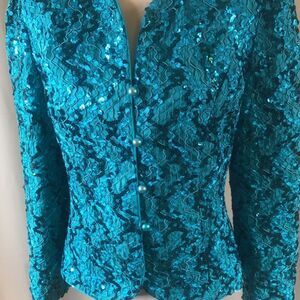 VTG Nah Nah Collection Lace Emerald Sequins Women Blazer Sz 12 Made In USA
