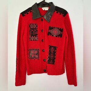 VTG Nancy Bolen City Girl Cardigan Jacket Wool Blend Size Small Aztec Western