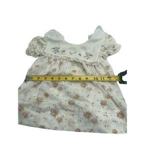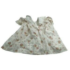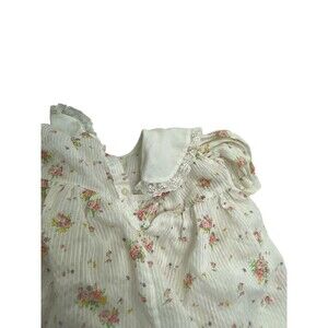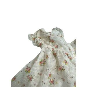 VTG Nanette Dress Baby Girls 6M Cream Pink Yellow Floral Puff Sleeves Lace Ties