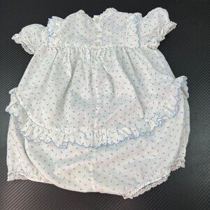 VTG Nannette Infant Girl Ruffle Romper One Piece Size L Made in USA Blue White