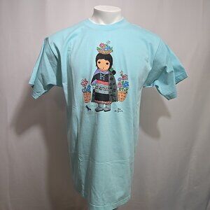 VTG Native American Flower Girl Teal Single Stitch Size Large de Grazia