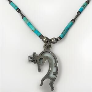 VTG Native American Turquoise & Sterling Silver Kokopelli Necklace Earring Set
