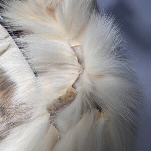 This is a Pre-owned Natural Coyote Coat with Natural Shadow and White Fox Tuxedo Trim in very good vintage conditions. This is a gorgeous coat, it is super soft and sophisticated and strong and wild at the same time. We found some tear around the outer fold of the neck seam as you can see on close up photos, that can be repaired and *we have lowered the amount for this coat because of that* Besides that, it is in great shape with a lot of life to give. It is fully lined in a bone off white fabric and it has leather trim cuffs, they are not noticeable unless is inside out.