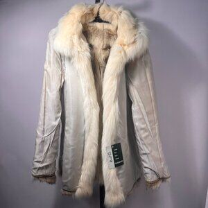 VTG Natural Coyote Coat with Natural Shadow and White Fox Tuxedo Trim M