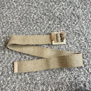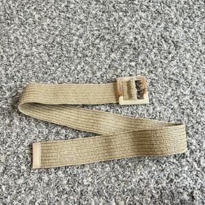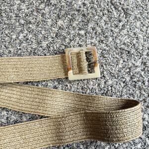 VTG Natural Raffia Belt Square Lucite Marble Buckle Boho Stretchy Classy New