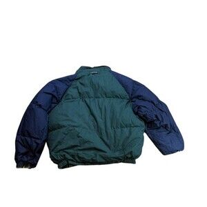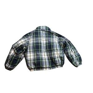 This is in ok shape. If you are looking for a cool vintage coat though - look no further! Hood is only on the green side. There is some fading around the collar on the green side. There is some dirt type staining on the plaid side - but it is pretty hard to see, since the pattern is so busy. Also there is a spot where a hole is sewn up. It is near the bottom left on the back of the jacket. Price reflects these flaws! Your chance to get a bargain. Preppy - Outdoors - 90's - 80's - Winter - Academia - College - Gorpcore