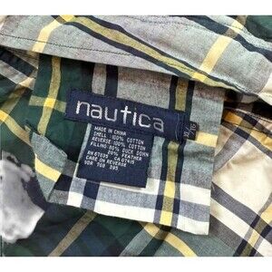 VTG Nautica Down Reversible Puffer Jacket Men's Size XL Plaid Green - 90's- FLAW