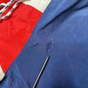 These Nautica Flag Trunks are in used condition with a small hole on the front thigh area (as seen in photos) and a couple small stains in the white area (as seen in photos). They are a size XL and the measurements are as follows...