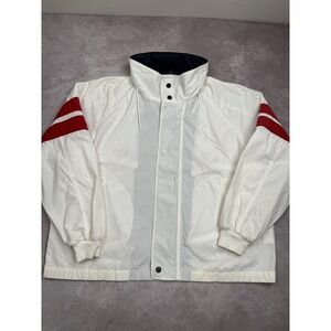VTG Nautica Jacket Mens XL White Red Yachting Sailing Windbreaker Hooded 90s