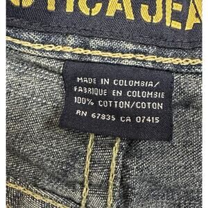 The product is a pair of men's Nautica jeans in size 32x34 with a straight leg and loose fit, made of denim fabric in blue color. Featuring a zip closure, embroidered logo accents, and pockets for added convenience, these jeans offer a comfortable and stretchy fit for all-day wear. Perfect for any season, these classic yet modern jeans are a stylish addition to any wardrobe, combining a timeless look with a touch of outdoor flair. Made with quality materials and care instructions, these new with tags Nautica jeans are a versatile and fashionable choice for any man's closet.