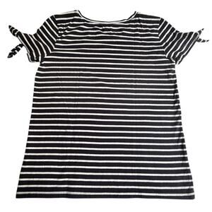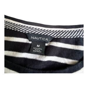 • This vintage Nautica top is a must-have for any wardrobe! It features a classic black and white striped pattern with unique tie sleeves. Made from 100% cotton in Guatemala, this short-sleeve shirt is in like-new condition. Perfect for a nautical-inspired look or a casual day out. Grab this stylish piece today!