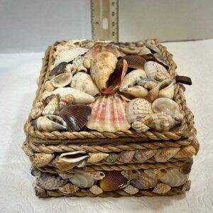 Vintage Handmade Seashell Covered Decorated Rectangle Trinket Box
