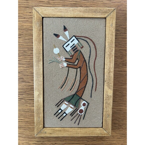 VTG Navajo Sand Art Painting Rainbow Ceremony 6.5”x10.5” Framed Signed Yazzie
