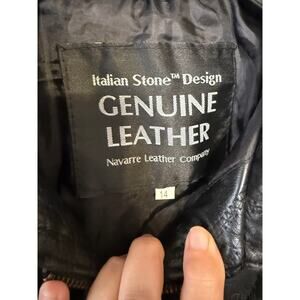 Step out in style with this vintage Navarre Leather Company jacket! Crafted from genuine leather with a unique Italian stone design, this jacket is sure to turn heads.
