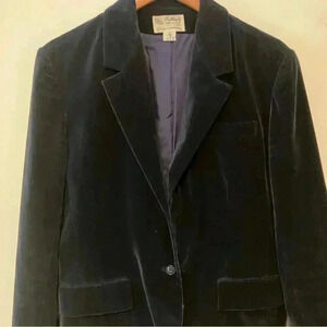 VTG Navy Velvet Women's Blazer 14 BUTTERFLY PRESTIGE Puff Sleeve Preppy College