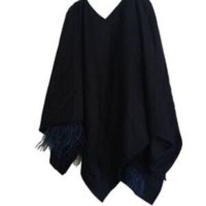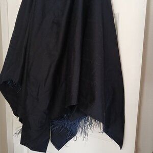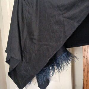 VTG Navy Wool Felt Feather Boa Cape Shawl Wrap Poncho Evening Cloak
