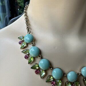 VTG Necklace 19" Mythologie Crystals Floral Rhinestones Teal Green Pink NWT