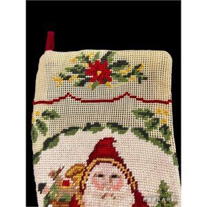 VTG Needlepoint Old World Santa Clause Christmas Stocking Velvet Back