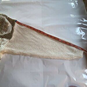 VTG Needles & Yarn Patchwork Knit Ramie Blend Sweater Beige/Brown Shoulder Pads