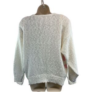 Description: VTG Needles & Yarn Size Large Knit Floral Sweater Womens Embellished Ivory Padded