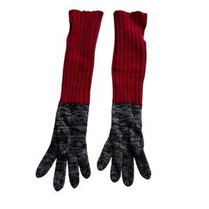 VTG Neiman Marcus Full Finger Knit Long Arm Warmers Gloves Women Small Red Black