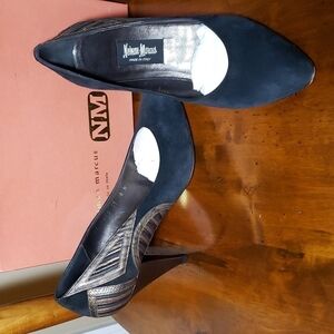 VTG Neiman Marcus Kenna Italian Made Black Suede Heel Pumps EUC 8N in Box