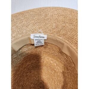 Keywords: Neiman Marcus hat, luxury straw hat, wide-brim hat, derby hat, Italian-made hat, summer accessories, elegant sun hat, woven straw hat, formal event hat