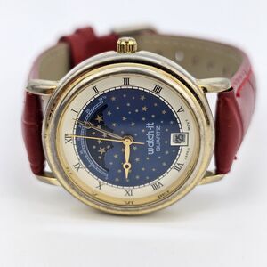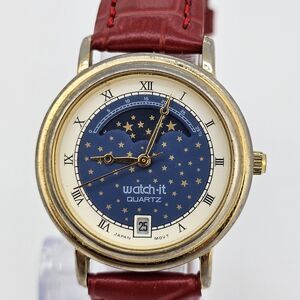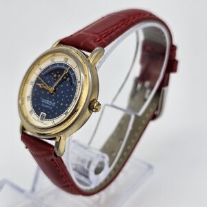 VTG Nelsonic Moonphase Women Watch 30MM Blue Dial Roman Numerals New Bands Batte