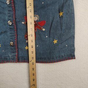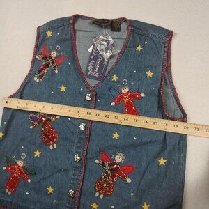 VTG New Direction Denim Vest Womens sz L Christmas Angel Embroidered