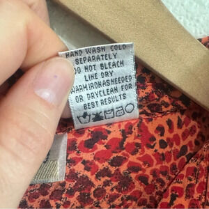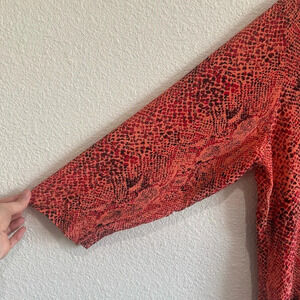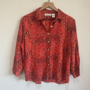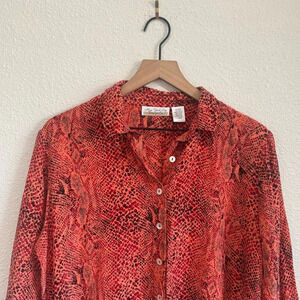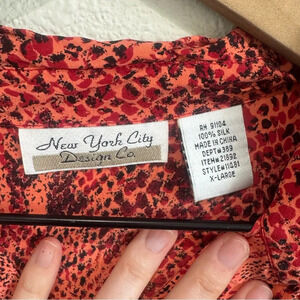VTG New York City Design Womens XL Silk Leopard Reptile Printed Blouse Red Pink