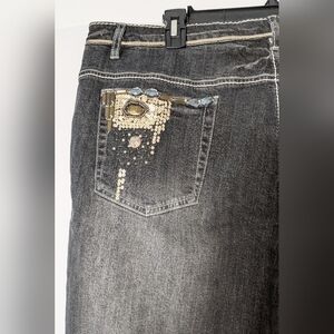This is a Gorgeous Pair of Newport News Vintage Women's Embellished Black Denim Jeans in Size 18. It is decorated with lots of Beads and Sequins. Measurements are: waist - 41", inseam - 32", rise - 11". They do have a little bit of stretch to them (98% cotton, 2% elastic). They are in great condition. Please see pics for details.
