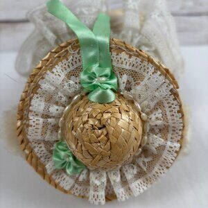 VTG Nicole Products Jointed Bear Straw Hat Eye Glasses Lace Green Bows