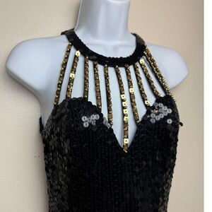 Black sequins with gold sequins at neck