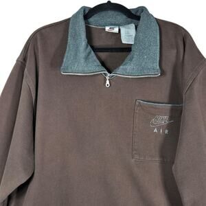 VTG Nike Air Sweatshirt Mens Large Brown Quarter Zip Pullover Pocket Embroidered