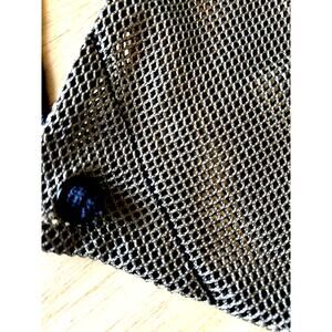 The VTG Nike Black Gold Mesh Bag is a vintage gym cinch sack with a drawstring closure, perfect for travel and casual occasions. Made of polyester with a solid pattern in gold and black, this medium-sized bag featuring the iconic Nike brand is ideal for fans of sports and 90s nostalgia. The nylon handle/strap material adds durability to the bag, which is a stylish and practical choice for both men and women looking to make a statement at the gym, stadium, or festival.