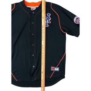 Show off your love for the New York Mets with this vintage Nike team MLB baseball jersey. Made from high-quality materials, this jersey is designed to offer maximum comfort and durability. With its black color and XL size, it is the perfect fit for any fan looking to show their support for the team. The jersey features the iconic Nike logo and the New York Mets team emblem, making it a must-have for any serious collector. Whether you are attending a game or just looking to display your love for the team, this jersey is sure to be a hit.