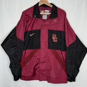 VTG Nike USC Trojans Team Sports Embroidered Windbreaker Maroon Full Zip Mens M