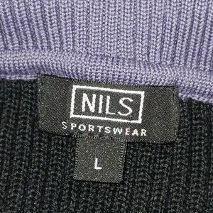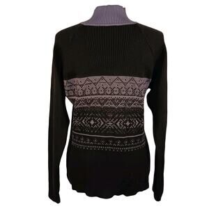 VTG Nils Ski Sweater Black Purple Fair Isle Wool Blend Large EUC