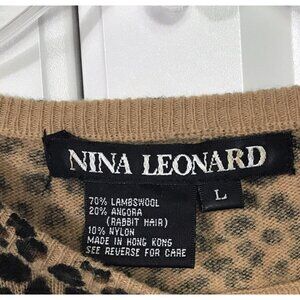 Vintage Nina Leonard Sweater Size L Lambswool Angora Leopard Print Pullover Crew Neck