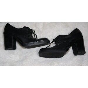 These leather platform chunky heel black lace up boots are lightly used and still in good condition. Genuine Leather, quality made shoes by Nine West (branded Nine & Co as their junior line in the 2000's).