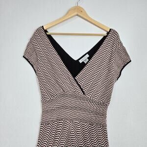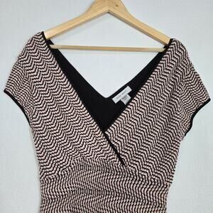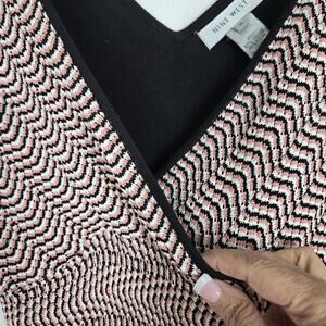 Vintage Nine West Dress Sz M Pink Black White multicolor Knit Fit & Flare Surplice Neckline