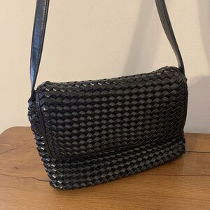 VTG Nine West Y2K 90's Shoulder Basket Weave Woven Black Handbag Bag Purse