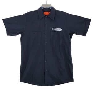 VTG Nintendo Work Shirt Mens M GAME OVER 2003 Black Button Up Short Sleeves RARE