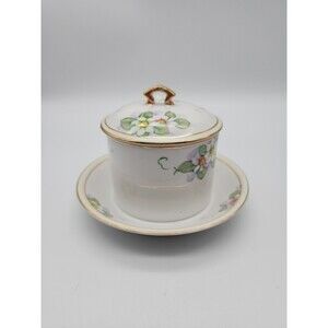 Nippon Hand Painted Sugar Bowl with Attached Under Plate and Spoon Floral Design. This dish is in exceptional condition considering age and use. The gold on the handle shows a little wear. There is a small defect on the under-dish rim and inside the rim of the dish. They do not appear to be chips. It is quite lovely! Item is sold as is. Measurements are inside the photos. Please ask all questions prior to purchase.