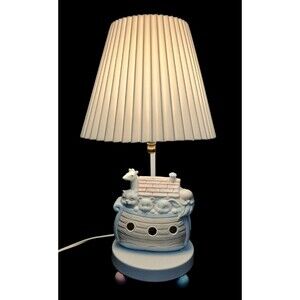 VTG Noahs Ark Baby Childrens Nursery Ceramic Lamp & Night Light 3 Way Switch EUC