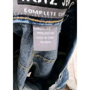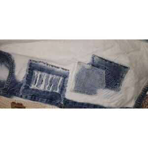 The VTG Noiz Jeans Shorts Mens 48 Jorts are a stylish and nostalgic addition to any wardrobe. These baggy denim shorts feature a high rise and 5-pocket design, perfect for a casual or travel occasion. The Bermuda style is accented with geometric embroidery and a button closure, with a light denim wash for easy care. Embrace the grunge and 90s vibes with these relaxed fit shorts that are sure to make a statement in the summer and spring seasons.