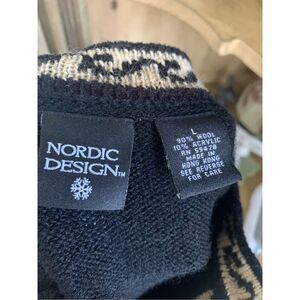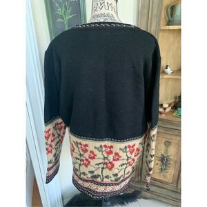 VTG Nordic Design Rare FLORAL Fair Isle Wool Cardigan Sweater Womens L great condition.