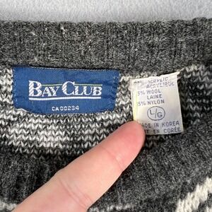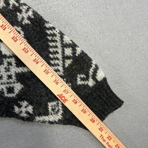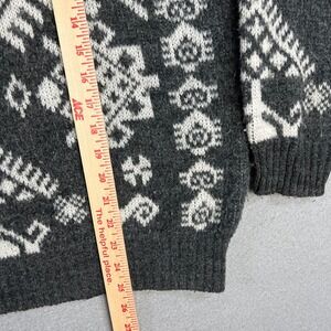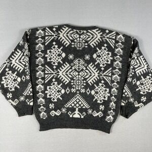 VTG Nordic Geometric Knit Sweater Large Gray White Wool Blend Fair Isle Pattern