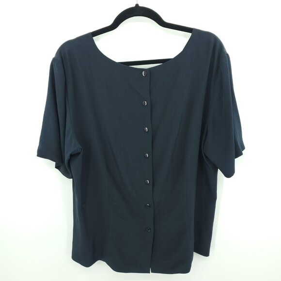 VTG Nordstrom Classiques 100% Silk Button Back Short Sleeve Shell Top XL Black