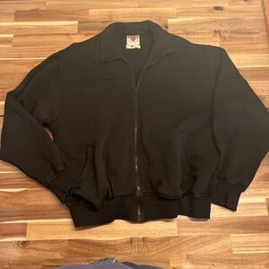 Up for sale is a vintage Nordstrom's Super Fleece men's sweatshirt in size XL. This black sweatshirt features a solid pattern and is made of a cotton blend fabric. It has a full zip closure, pockets, and a zipper accent. The sweatshirt is lightweight, stretchy, and breathable, making it perfect for all seasons and activities like walking, riding, and cycling. It was manufactured in Macao and is in great condition.